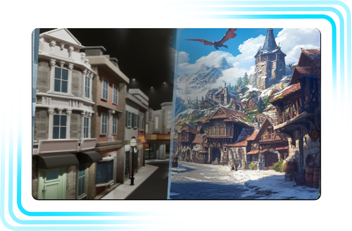 Adaptive AI video processing allows creators to enhance their projects with additive effects. Need a crowd for a background or an epic fantasy world for your film? We’ve got you covered.